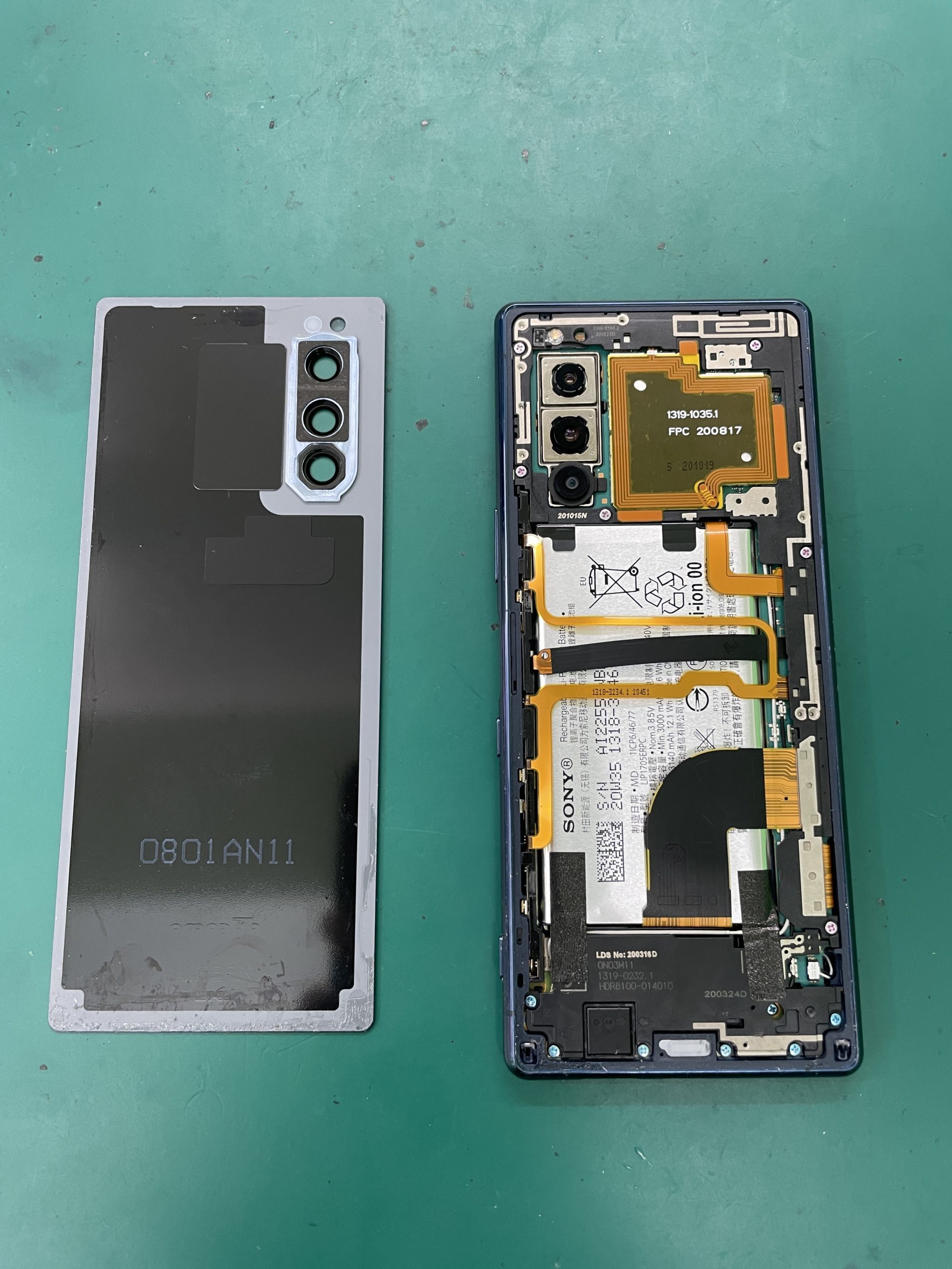 Xperia5は背面パネルを外して修理を行います。