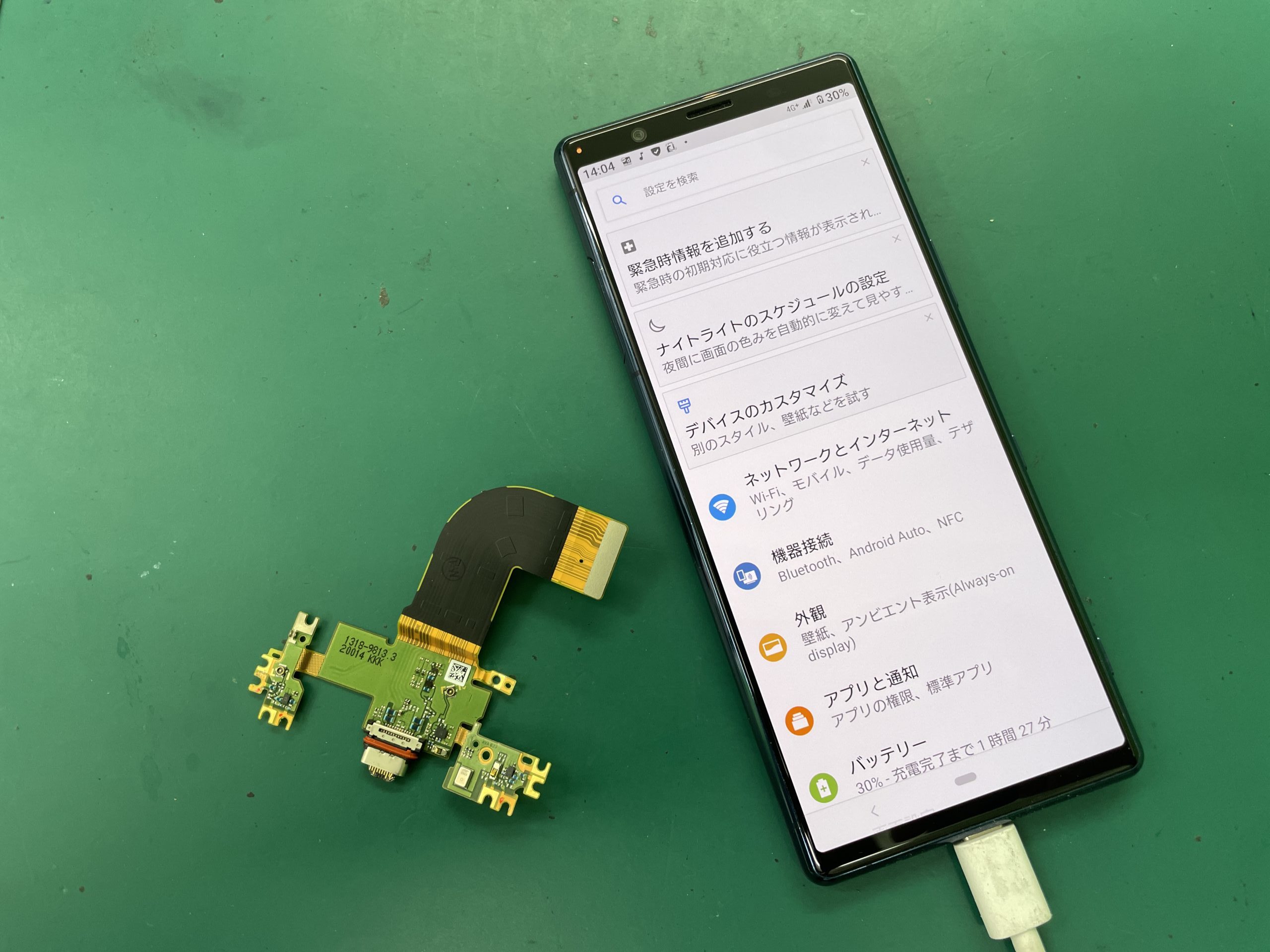 新しいXperia5の充電ポートに交換して作業は完了となります。