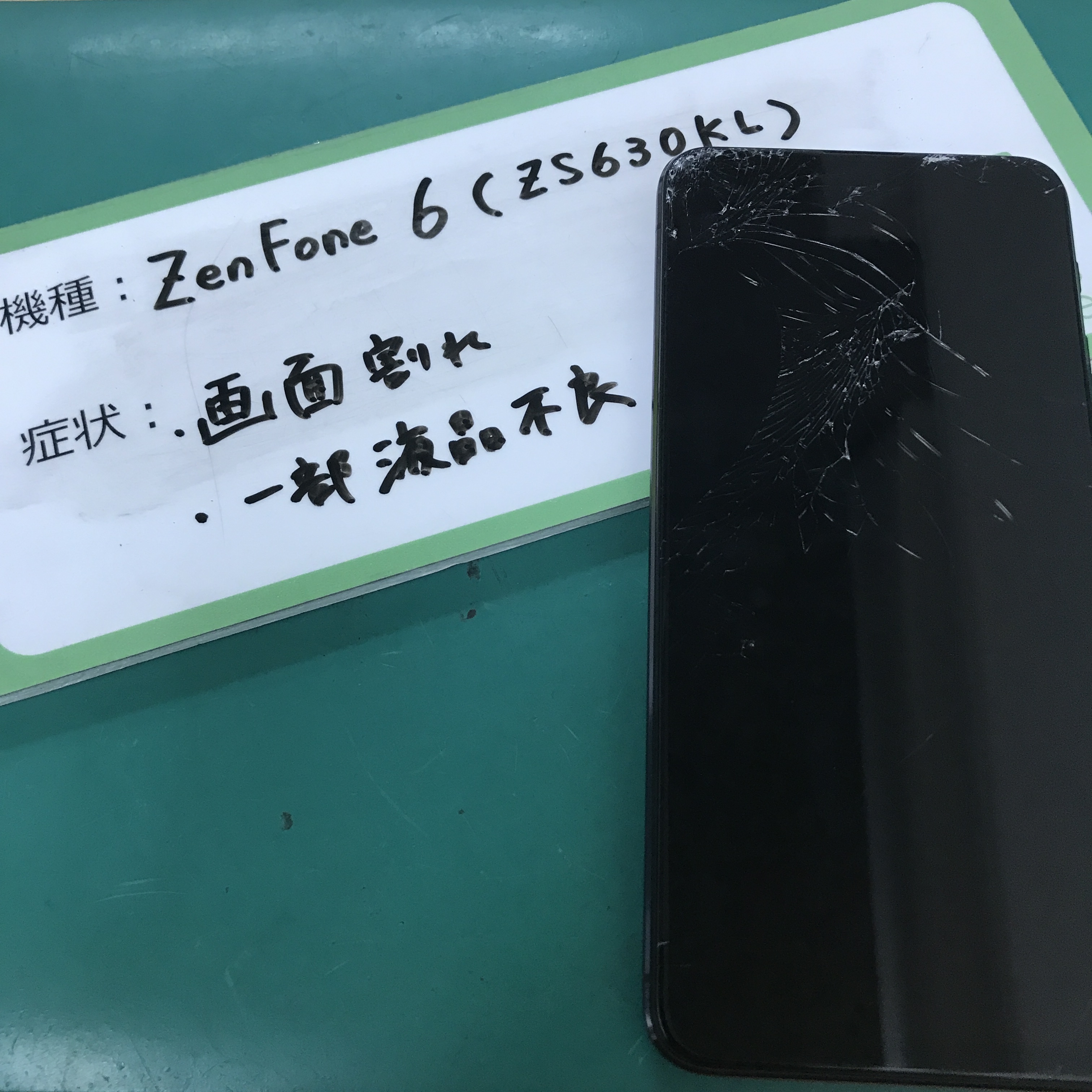 ZenFone6(ZS630KL)画面ガラス割れ-画面交換修理