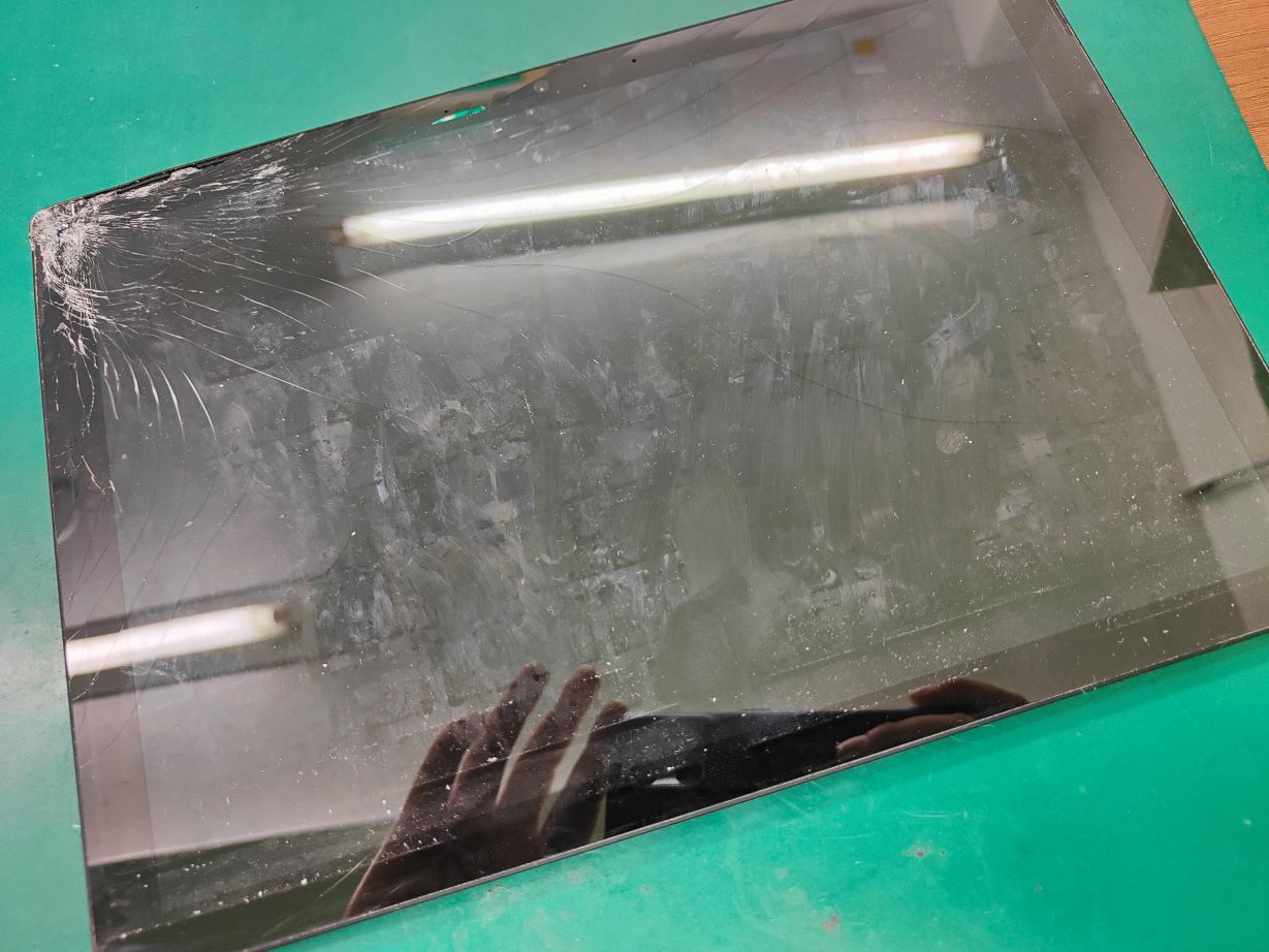 お使いのSurface Pro7を落下させてしまい、画面が大きく割れてしまったとのこと。