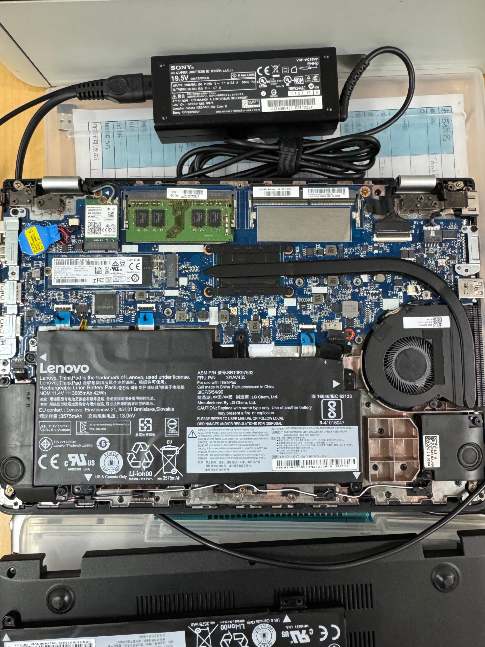 無事に分解できたら、あとは新品のバッテリーを仮付けして様子を伺います。無事に起動が確認できたら、元の状態まで組み上げて作業完了!