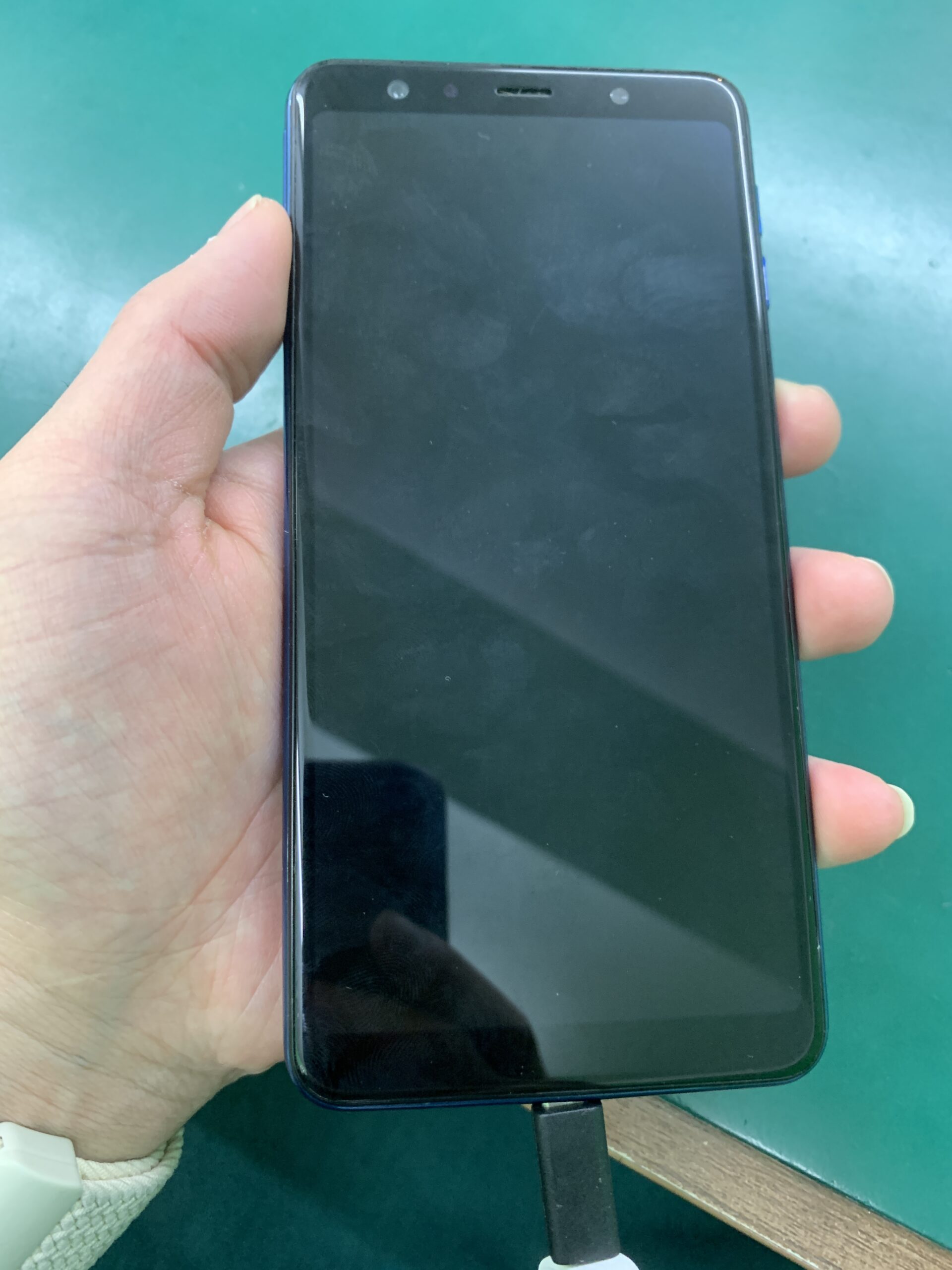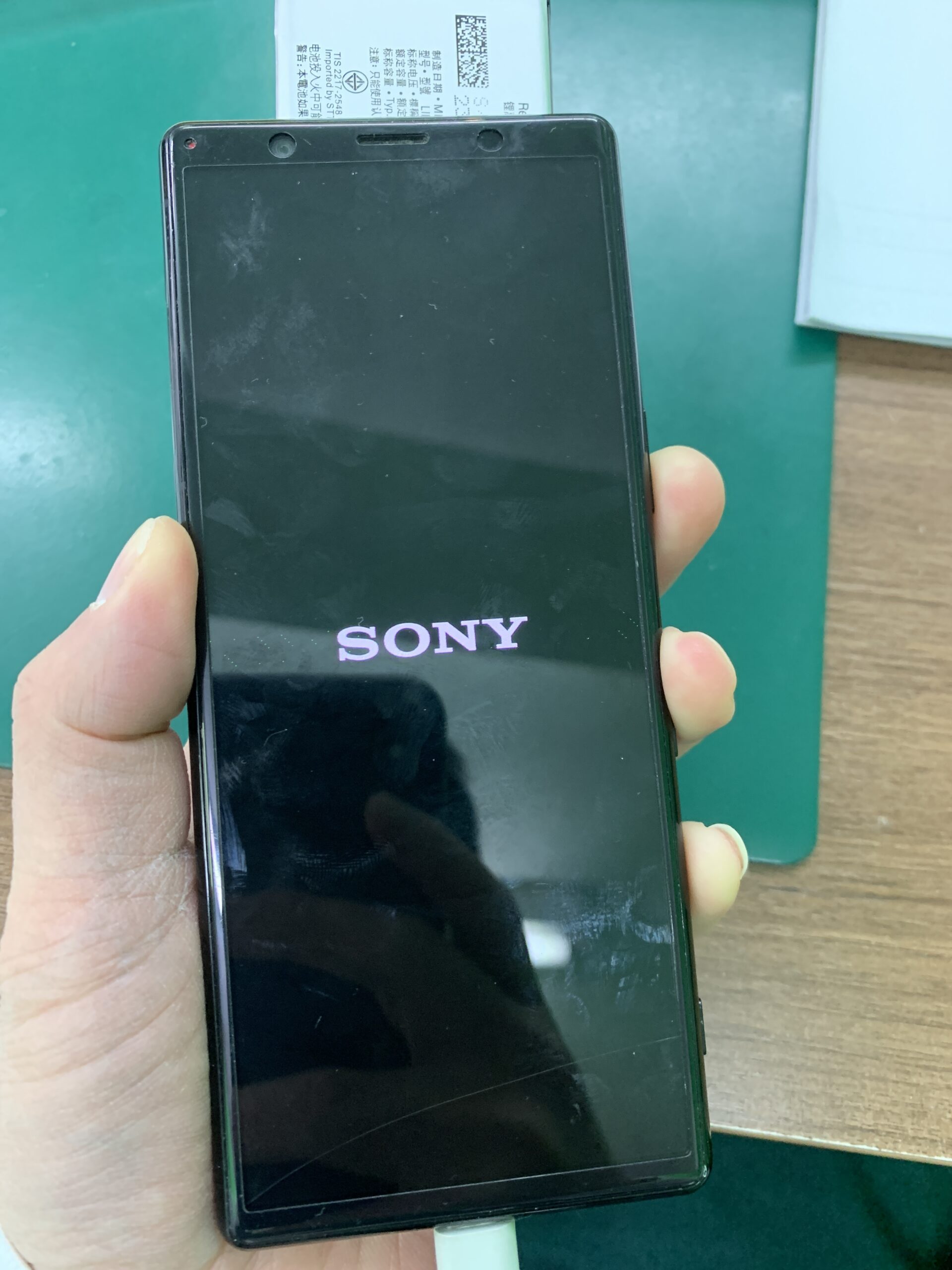 お客様からお預かりした Xperia 5 は、電源を入れても反応がなく、充電してもLEDが点灯しない状態でした。内部データをそのまま残して修理をご希望でした。