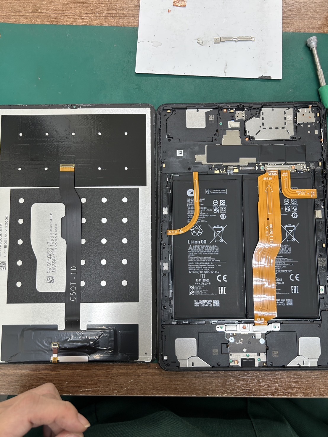 液晶画面を取り外した後の、Xiaomi Pad5の内部写真です。