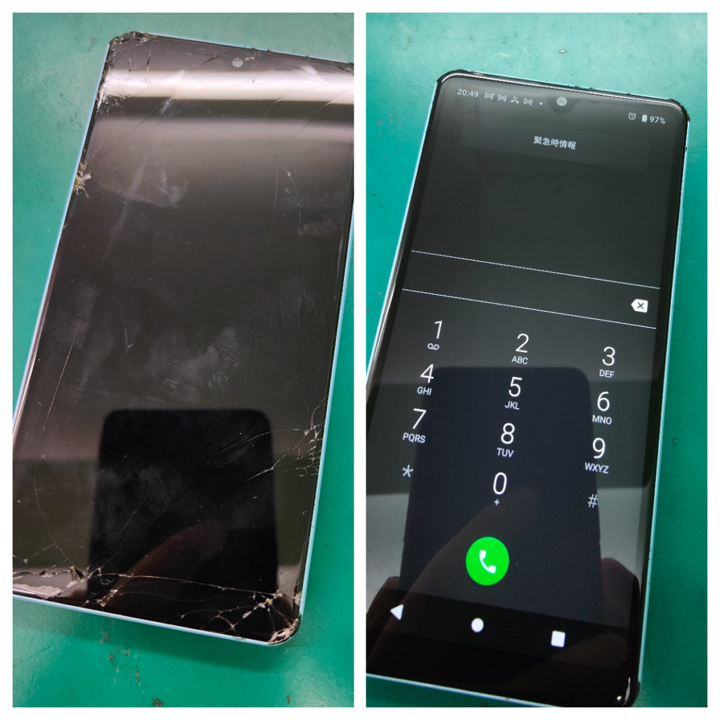 今回も、画面がオレンジ色とはいえ電源は入っておりますし、マナーモードのバイブ振動、通知音など「どうやら一応動いてはいるらしい」という兆候が見られました。であれば、明らかに壊れている部分(今回なら画面)だけ取り外して新品と交換すれば、問題なく使える様になるはずです。