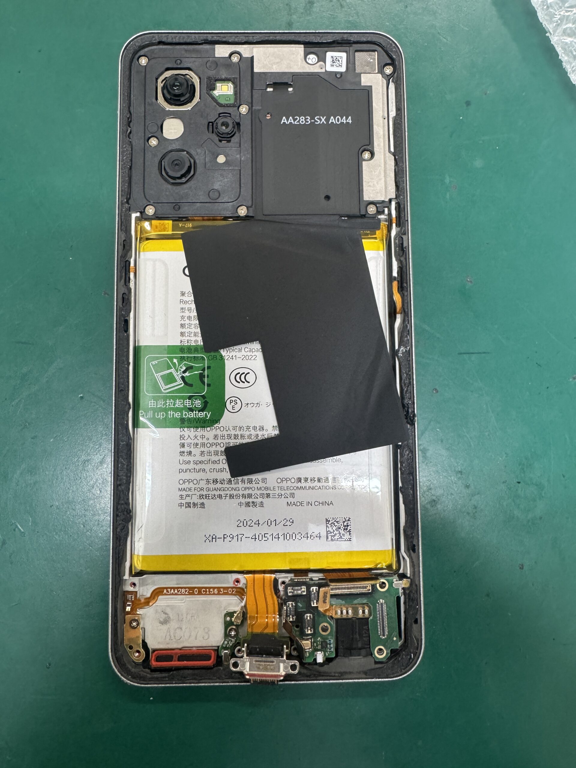 OPPO Reno5Aの画面を交換するときは、まずは背面のパネルを取り外して内部にアクセスし、ケーブルやバッテリーなどを外す必要があります。