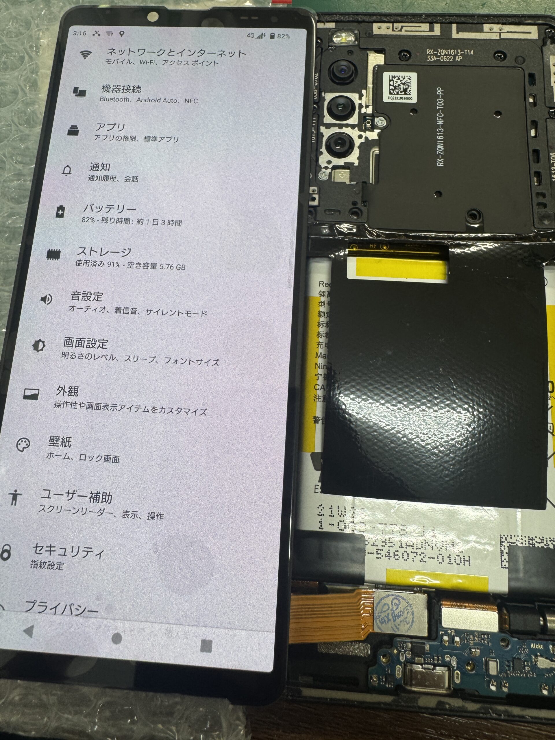 画面はまったく映らないものの、バイブの振動や通知音などはするとのことでしたので、液晶破損により画面が映らなくなってはいるが、電源は入っており動作していると予想されました。