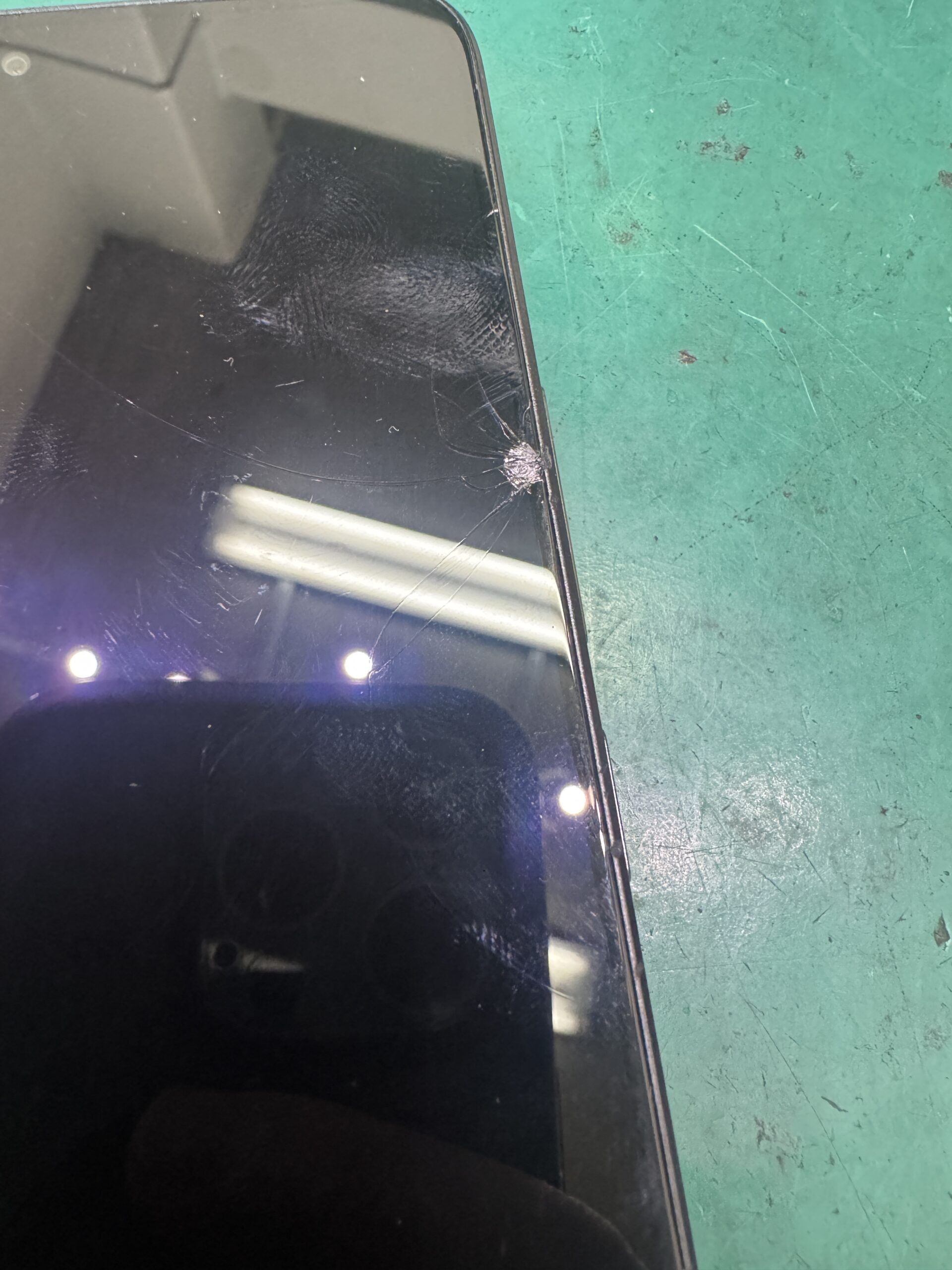 ご相談内容はOPPO Reno 5Aの画面割れでした。落としたことにより画面表面のガラスにヒビが入ってしまったとのことでしたが、幸いスマホの電源は入っていたため、画面交換修理ですぐ直せる状態でした。