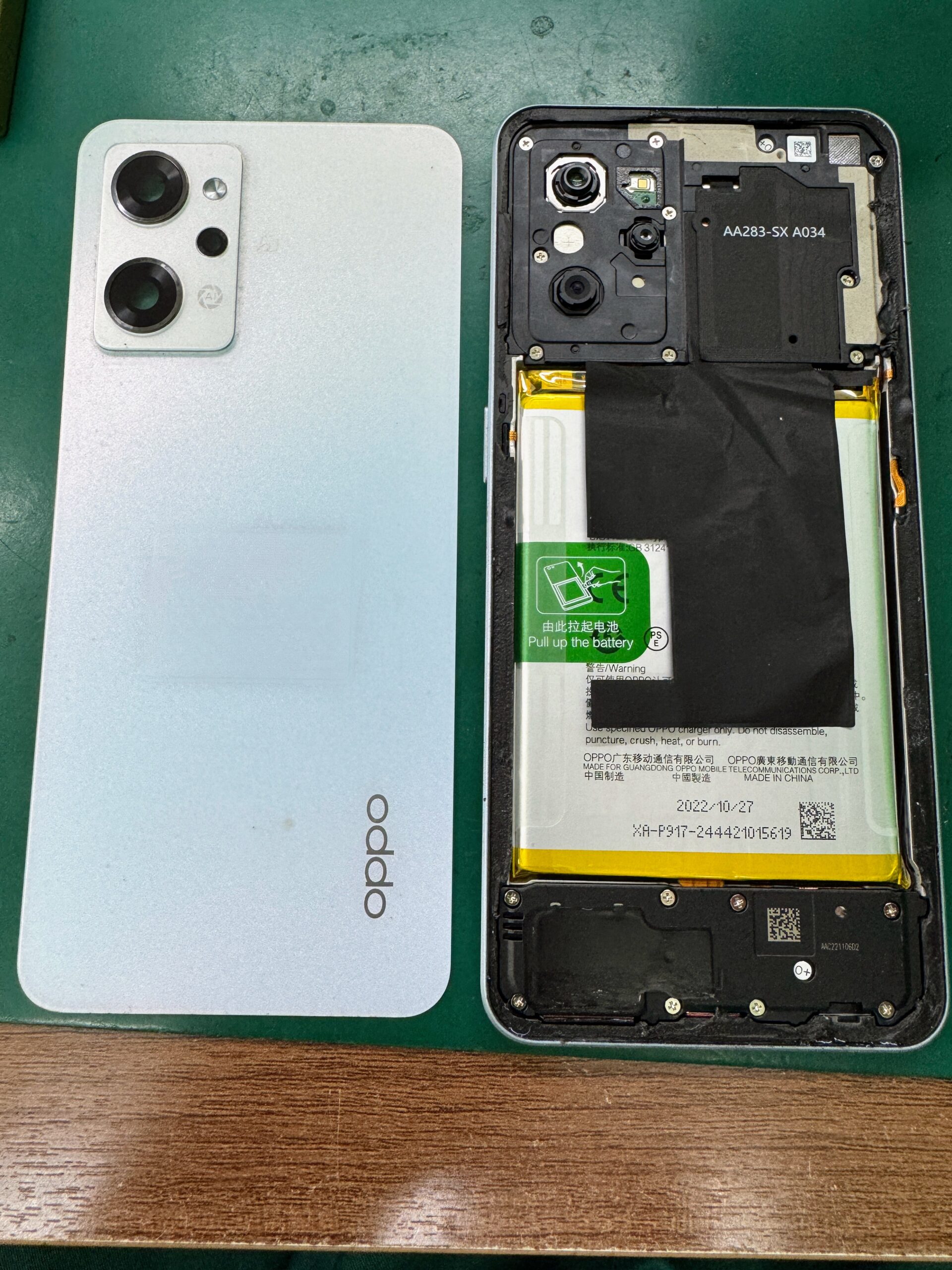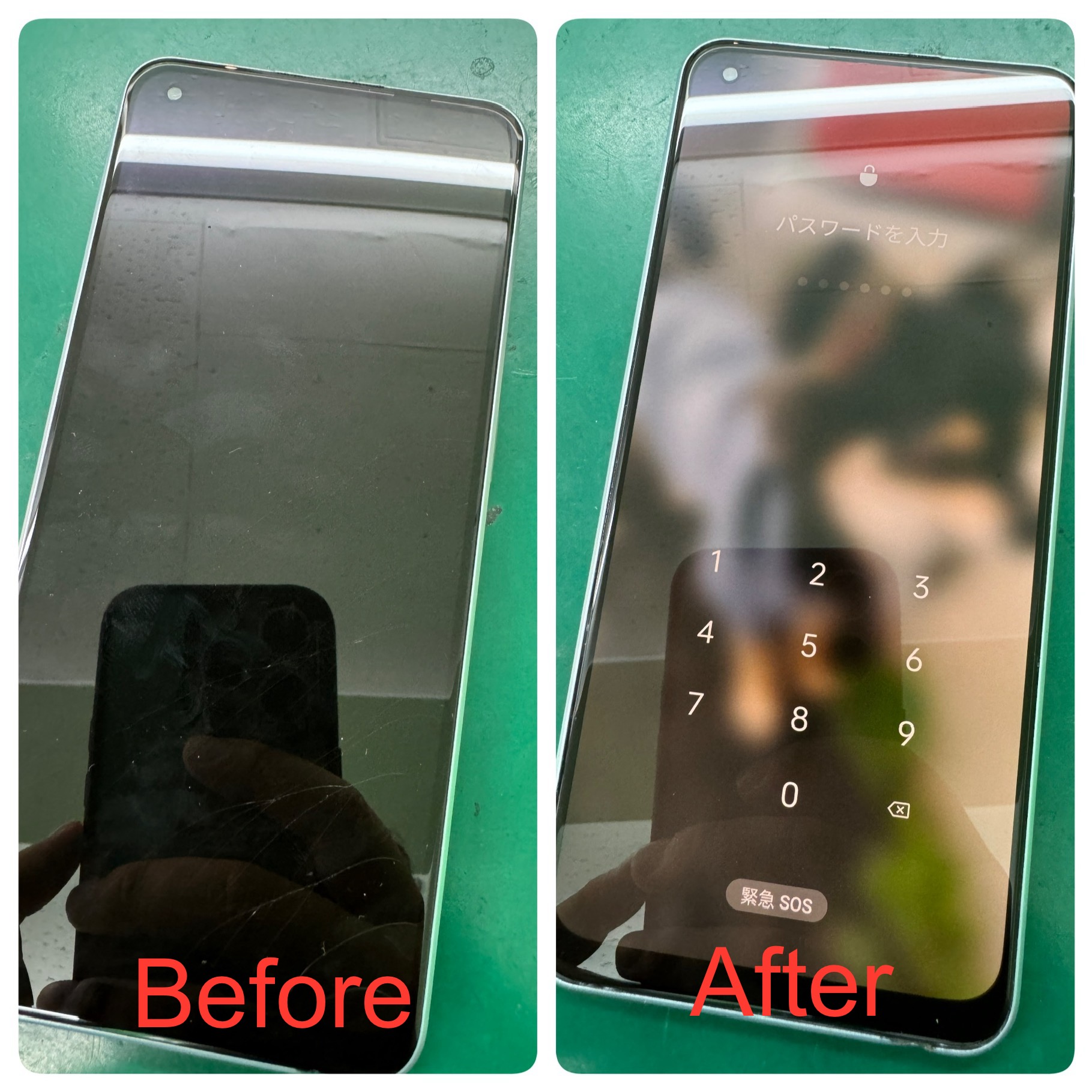 今回は、落として画面が映らなくなってしまった場合の【OPPO Reno 7A】の修理をご紹介します!
