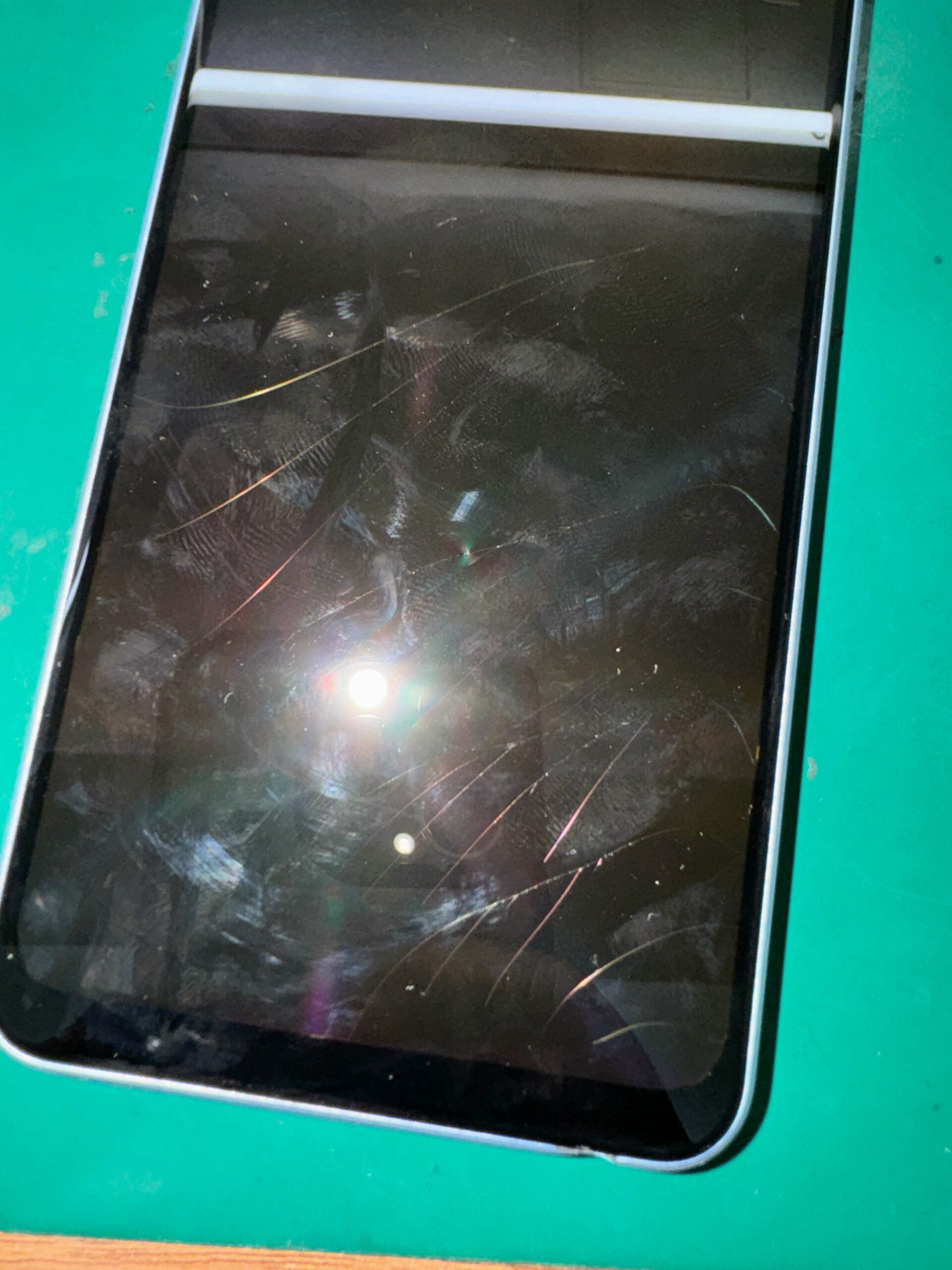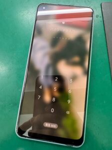液晶破損やタッチ不良はなく、操作しようと思えば可能ですが、ガラスのヒビがしっかり入ってしまっているため、非常に画面が見づらい状態です。