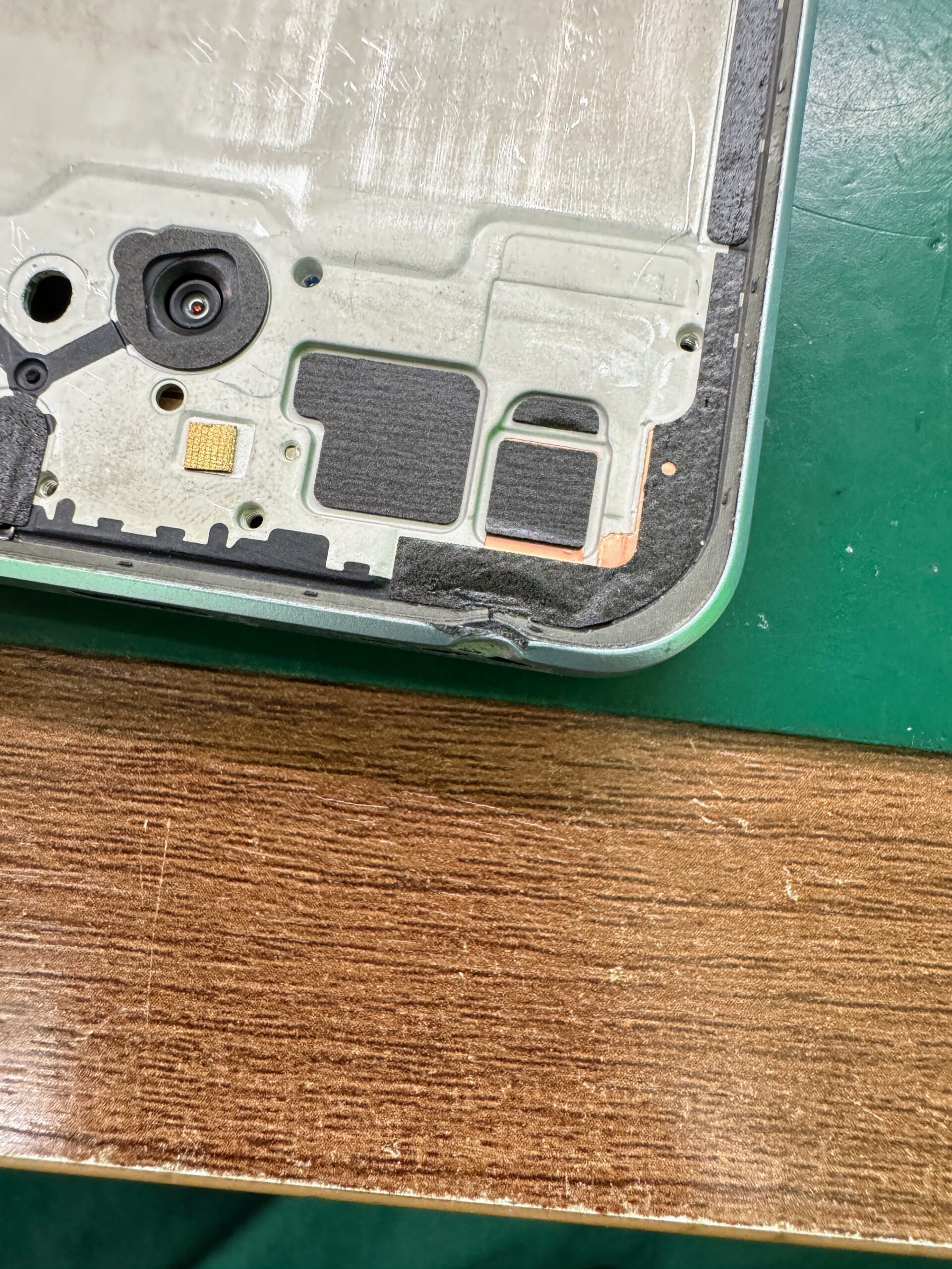 画面が取り付けられていたフレーム部分を確認すると、一部が大きく凹んでおり、反対側にボコッと飛び出してしまっていることがわかりました。フレームは固い金属製(アルミ?)なので、これが押しつけられたことによって有機ELパネルが割れてしまったものと思われます。