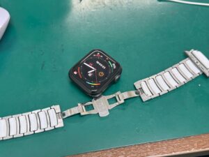 機種や症状によってはスマホやタブレット、パソコン以外の電子機器の修理も対応できるのですが、今回はバンドが固まって取れなくなってしまったAppleWatchの修理の一部始終をご紹介します