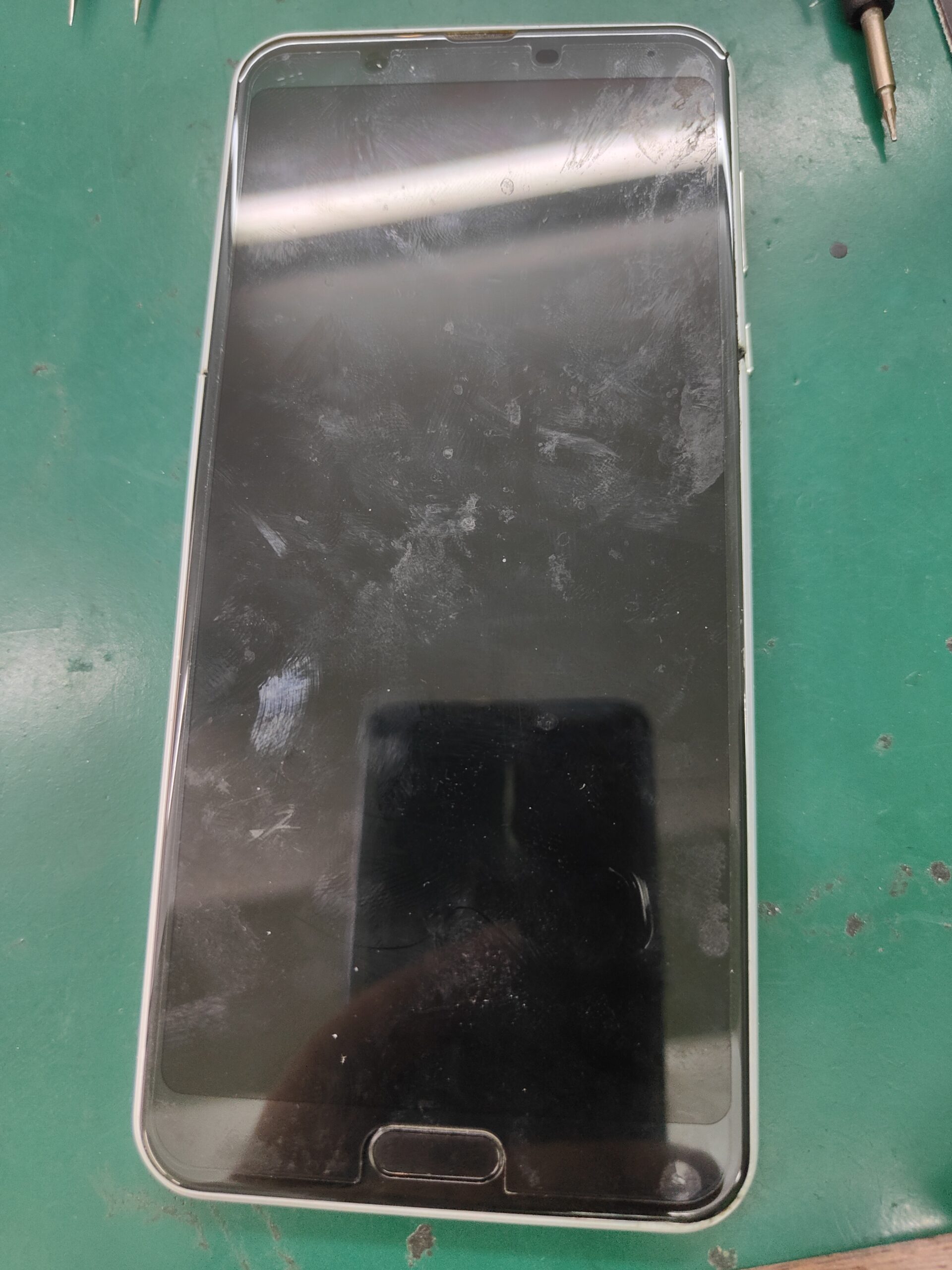 というわけで、3時間程お時間をいただき、終わったころにまた取りに来ていただくということで、スマホを預かり修理にとりかかります。