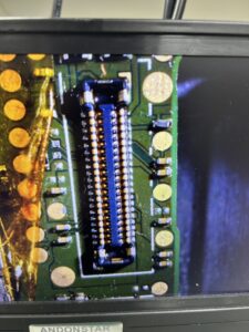 今回の場合、そんな基板上に搭載されたコネクタが焼けこげて損傷してしまっていますので、液晶パネルを交換したところで絶対に画面が点くことはありません…