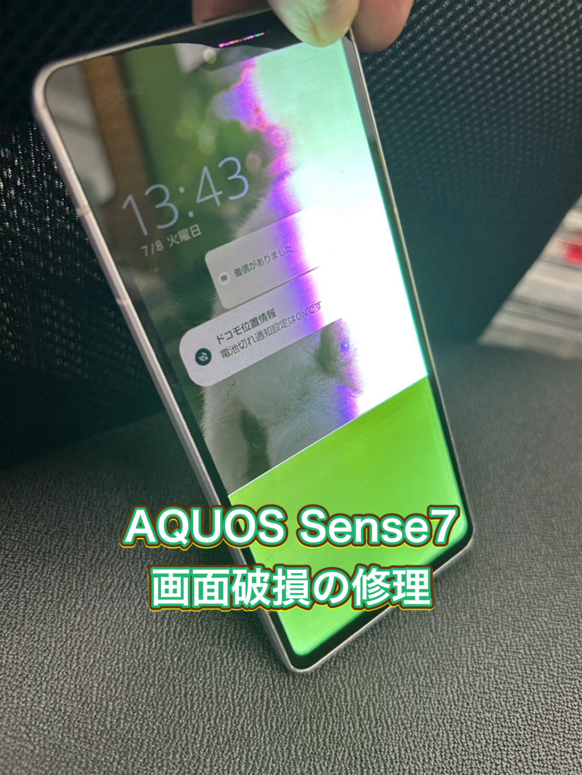 液晶が破損したAQUOS Sense7を即日修理しました!