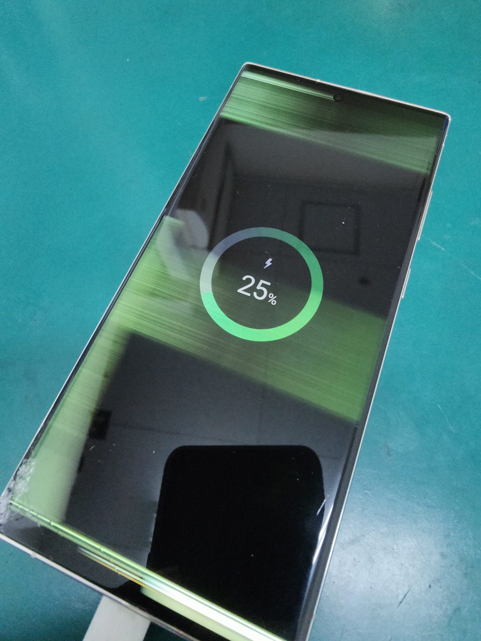 「スマートフォンを絨毯の上に落としてしまった。しばらくは何も問題なかったがある日突然消えない緑の線が発生した。」