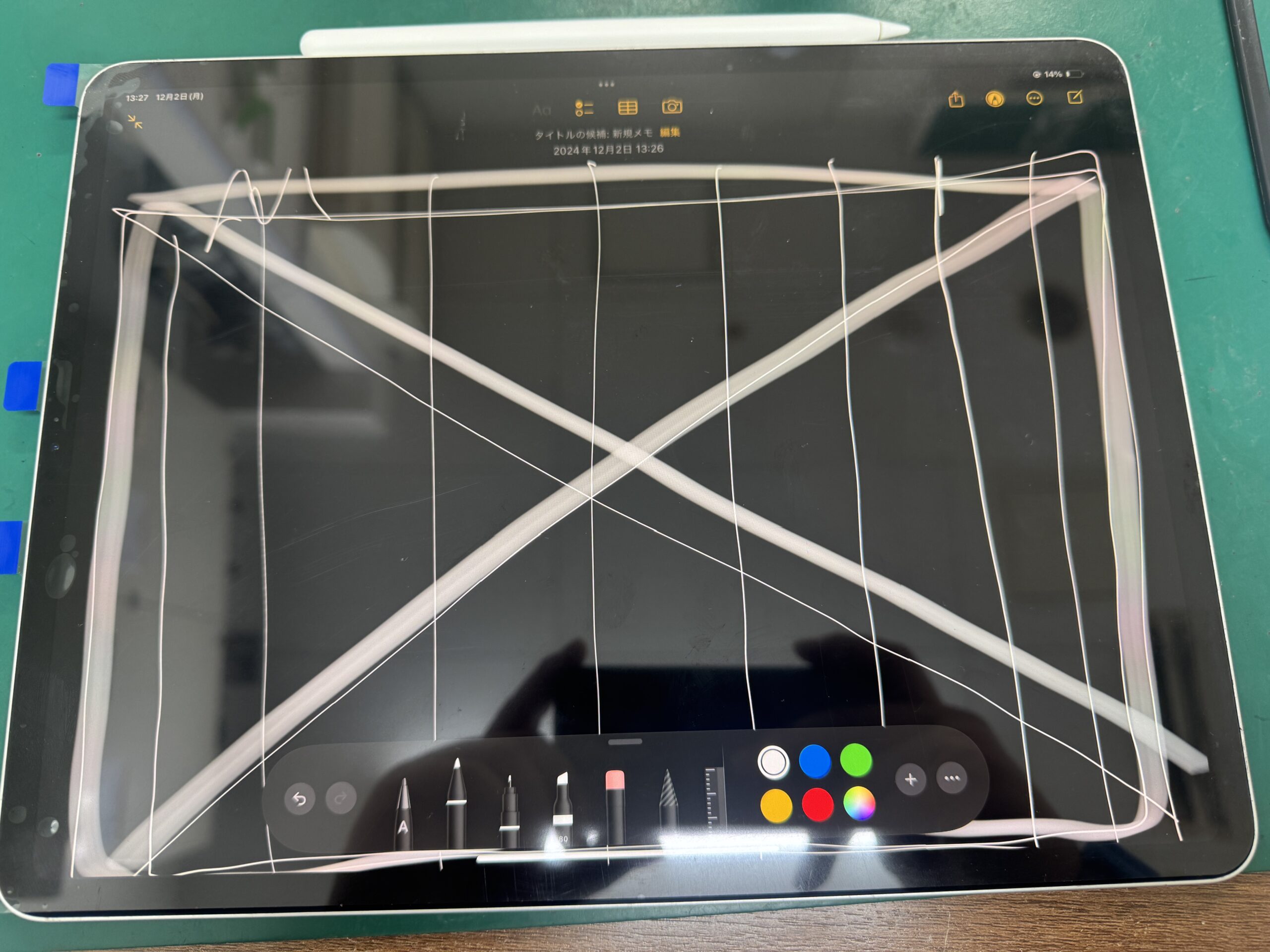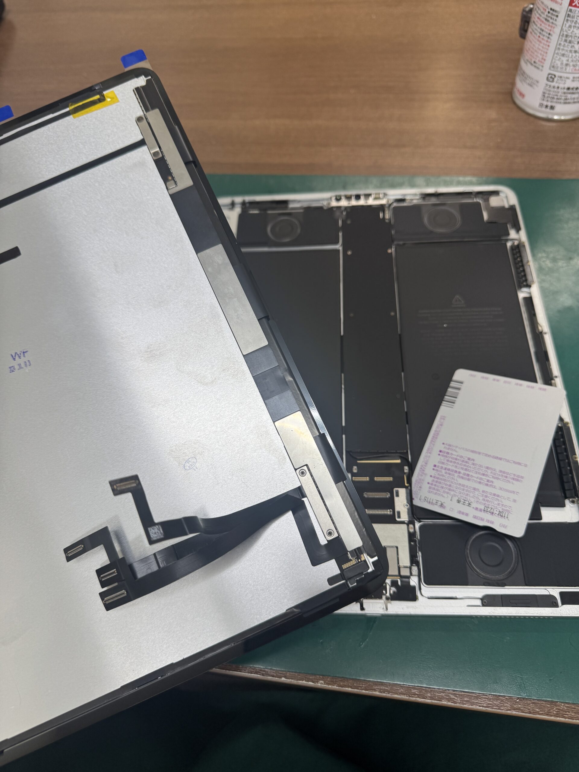 今回は、ガラスが割れたうえに何も映らなくなってしまった場合の【iPad Pro 12.9インチ(第4世代)】の修理をご紹介します!