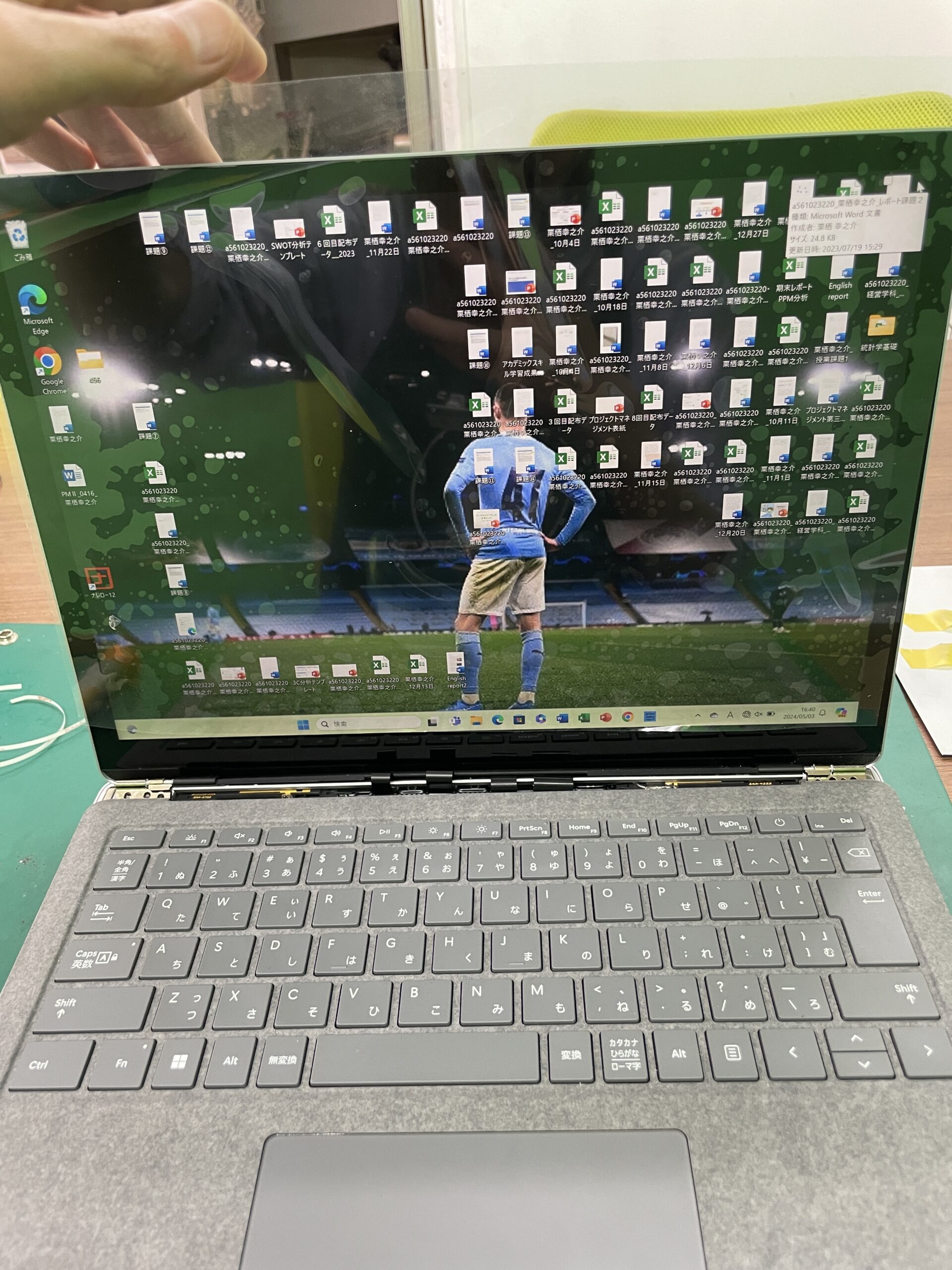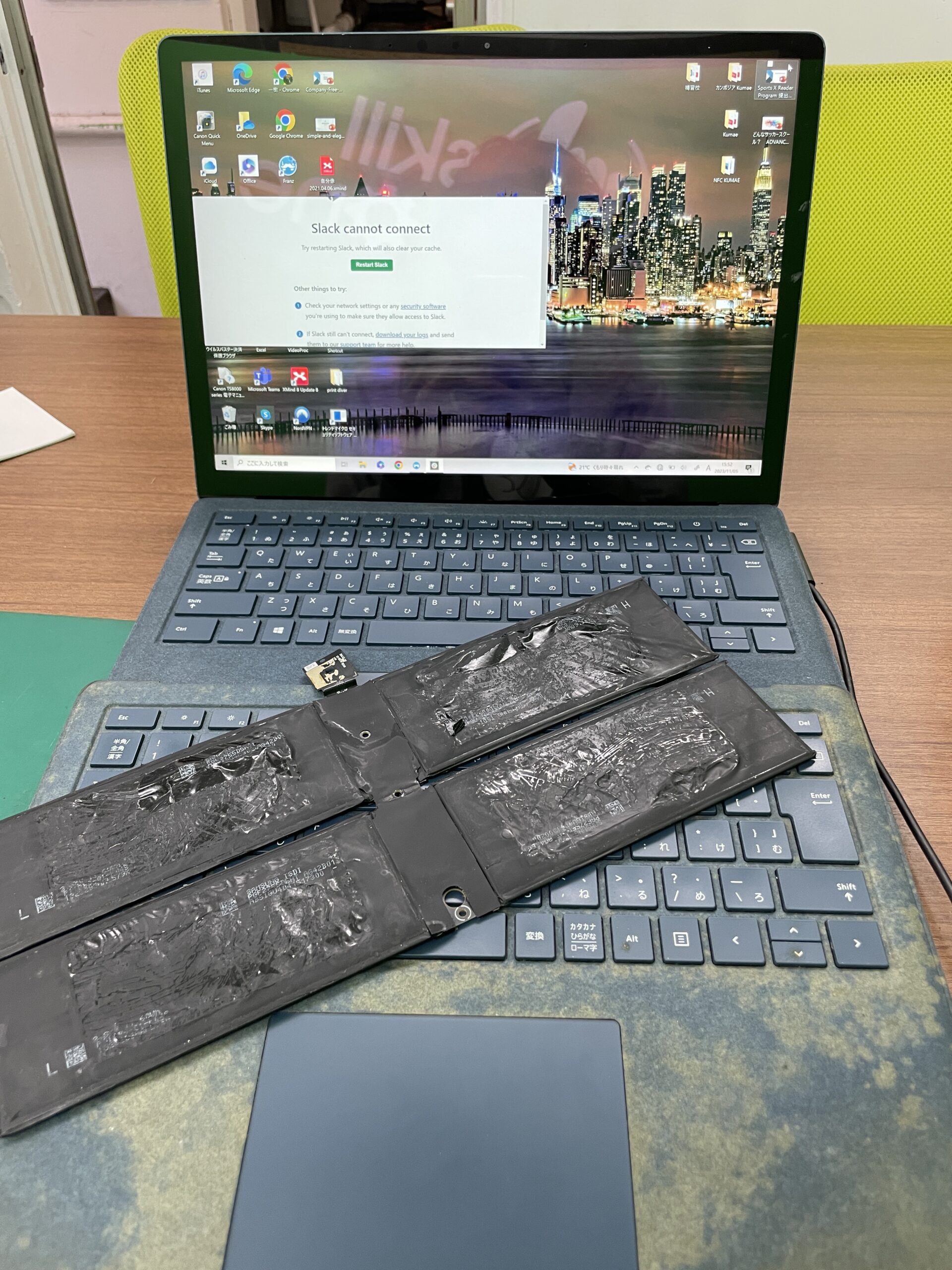 Surface Laptopを拝見すると、雨水によってキーボードの一部が効かなくなっていました。