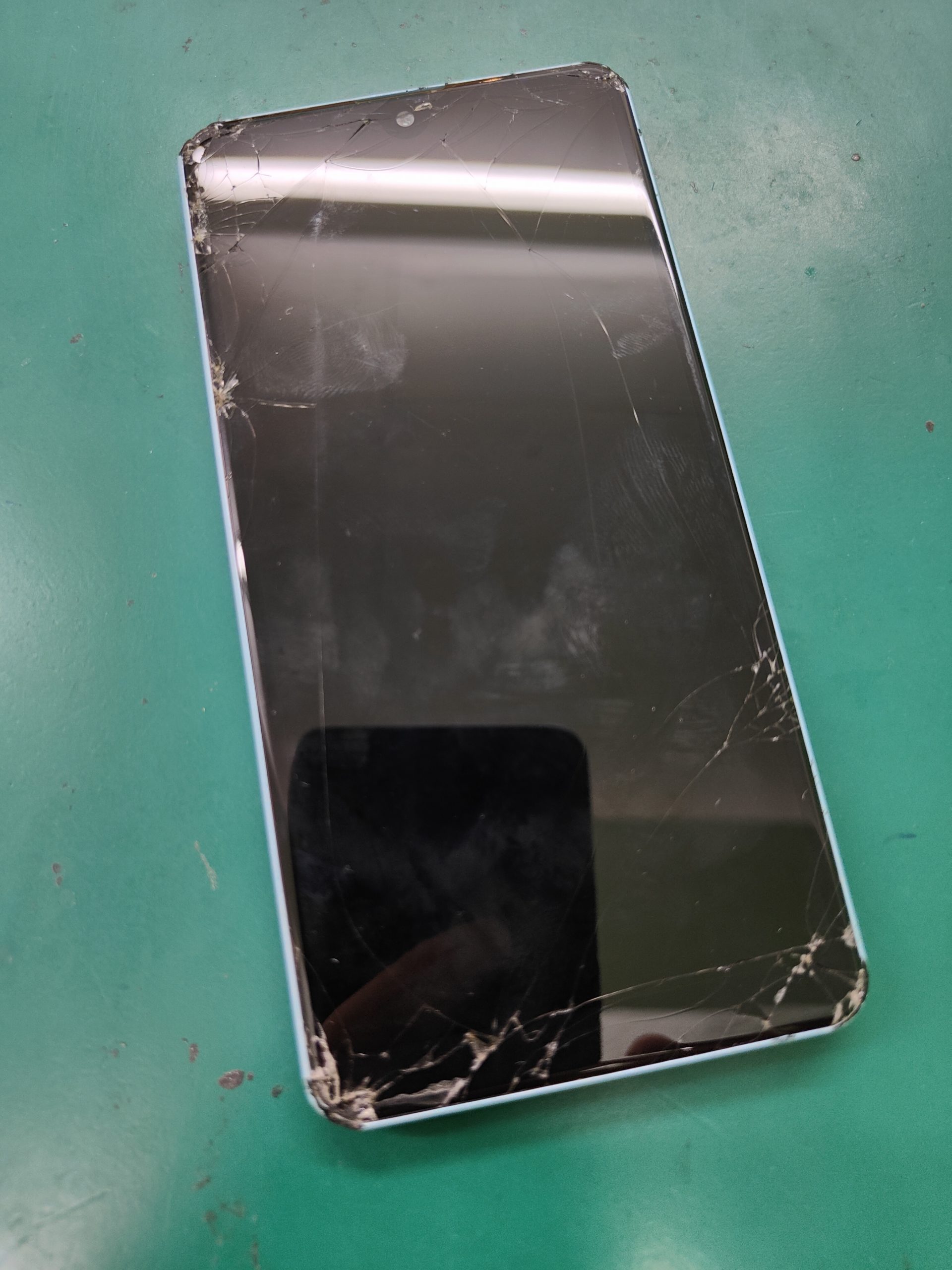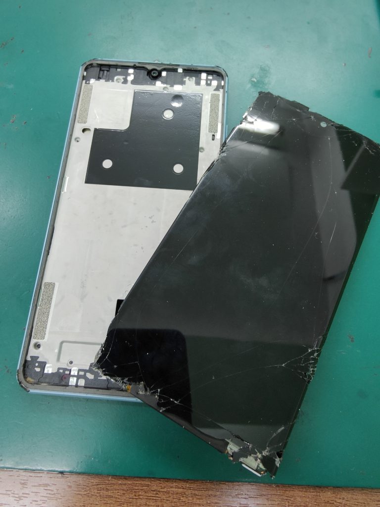 店舗に持ち込まれたときは、画面が割れた上に映らなくなり、全く操作できない状態でした。